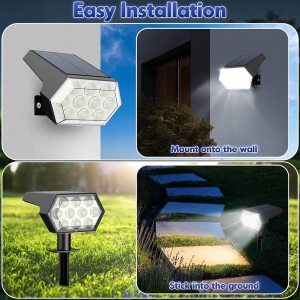- Easy To Install: Includes both sturdy ground spikes for lawn/garden installation and wall-mount brackets for fences/decks. The adjustable head allows 120° angle customization to perfectly highlight any outdoor area.